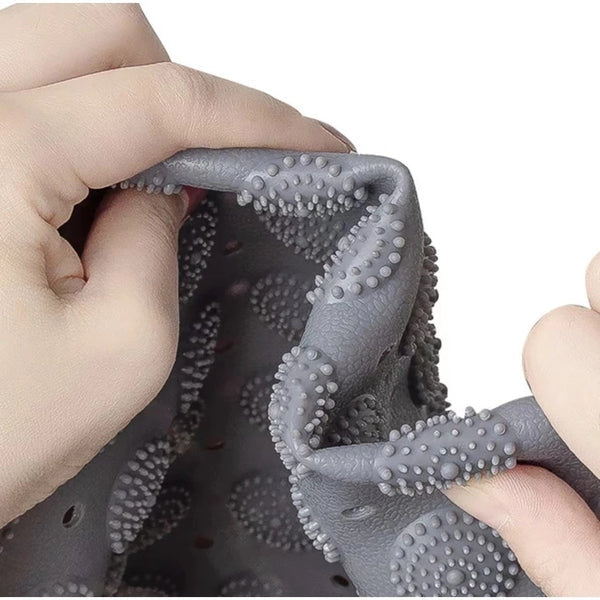 Com ventosas potentes na parte inferior, o tapete fixa-se firmemente à superfície, prevenindo escorregões e garantindo segurança durante o banho, ideal para toda a família.