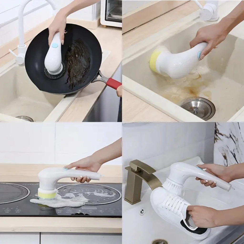 A Escova Elétrica de Limpeza 5 em 1 Multifuncional Recarregável é a solução perfeita para quem quer agilizar a faxina sem perder eficiência.