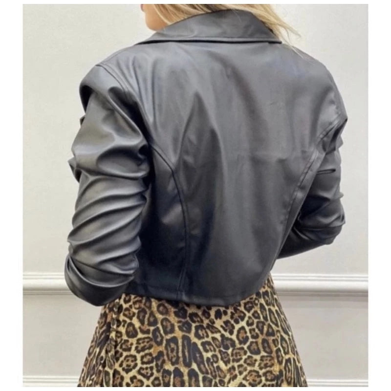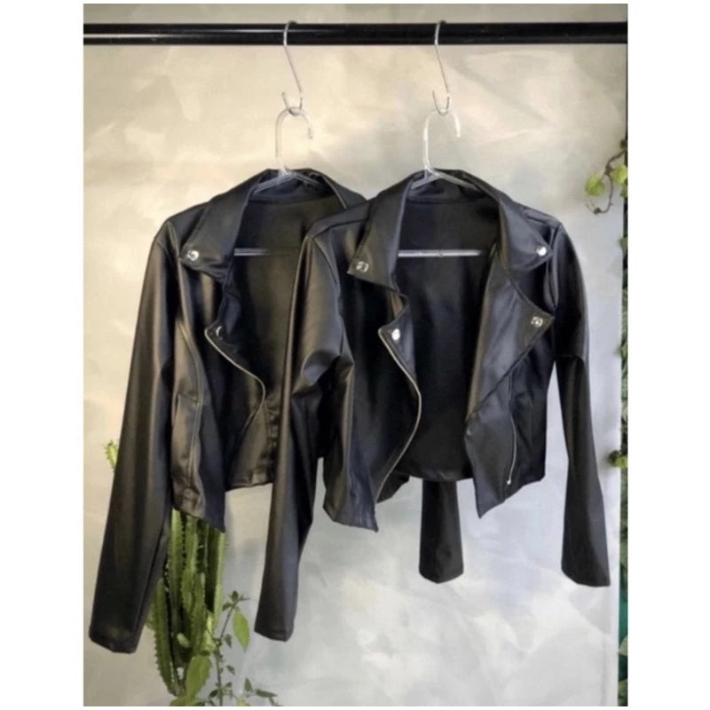- 1x Jaqueta de Couro Feminina com Zíper para Inverno