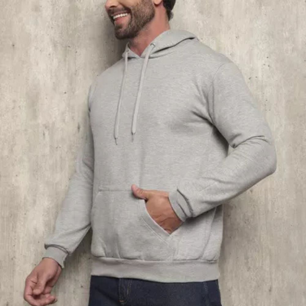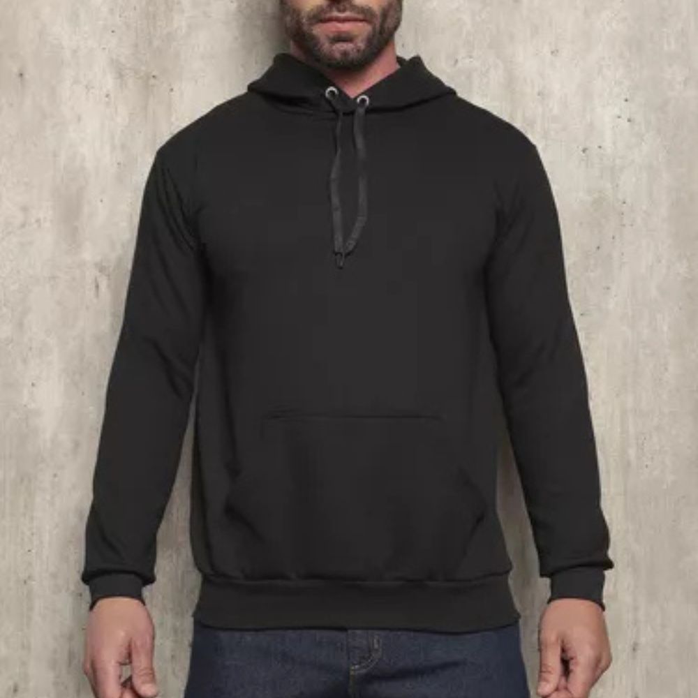 Com modelagem tradicional e capuz ajustável, o moletom conta com bolso estilo canguru, perfeito para aquecer as mãos ou carregar objetos com praticidade.
